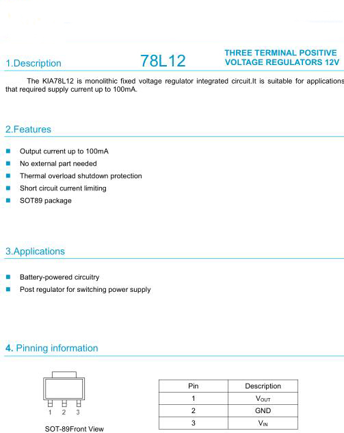 三端穩壓管7812簡介用78 79系列三端穩壓IC來組成穩壓電源所需的外圍元件極少,電路內部還有過流、過熱及調整管的保護電路,使用起來可靠、